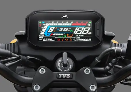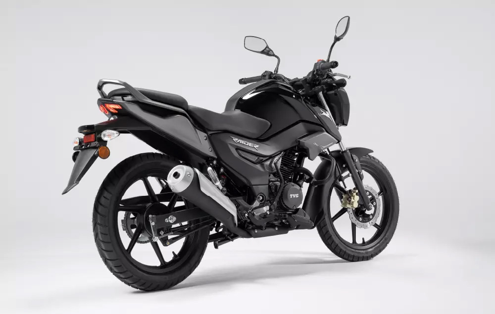 TVS RAIDER – El Andar Malvado ¡Es el momento, es la hora de la maldad! Hazte malvado con un estilo deportivo distinto, con el mejor rendimiento de su clase y con funciones avanzadas de alta tecnología. La TVS Raider es una combinación de confort y estilo, convirtiéndola en el mejor producto del segmento.
