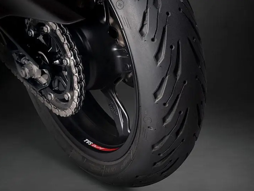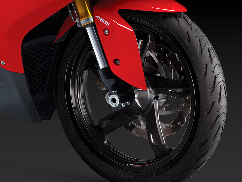 El TVS RR310 está equipado con neumáticos Michelin Road 5 totalmente nuevos, diseñados con compuestos de próxima generación y con el sistema patentado de Michelin. Con tecnología ACT+, estos neumáticos brindan un agarre superior en las curvas y ofrecen una sensación de conducción superior.