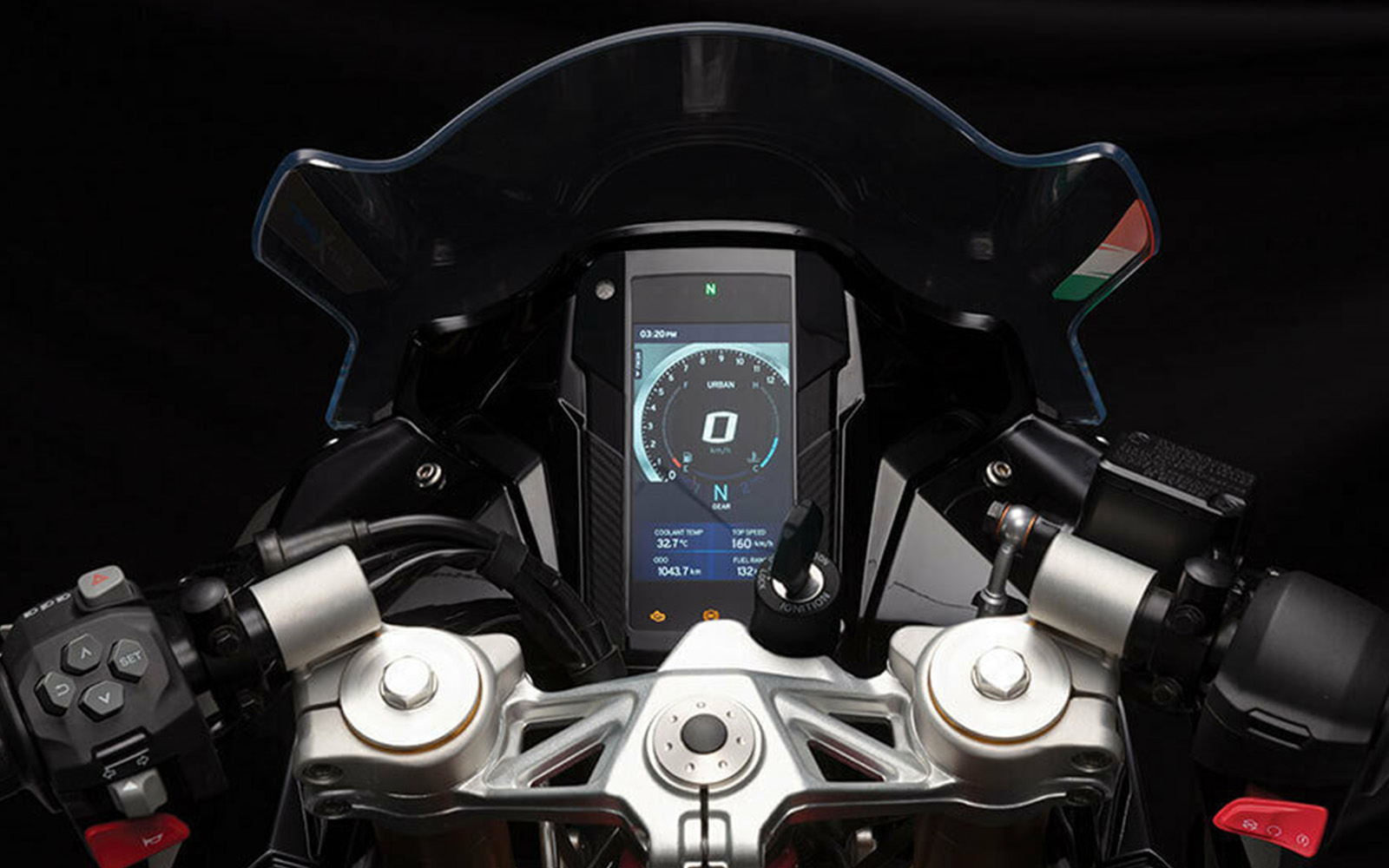El ABS de doble canal es la síntesis perfecta de rendimiento y funcionalidad. El ABS evita el bloqueo de las ruedas y la protección contra el despegue de las ruedas traseras mantiene las ruedas del corredor en el suelo, incluso cuando se frena tarde en las curvas.