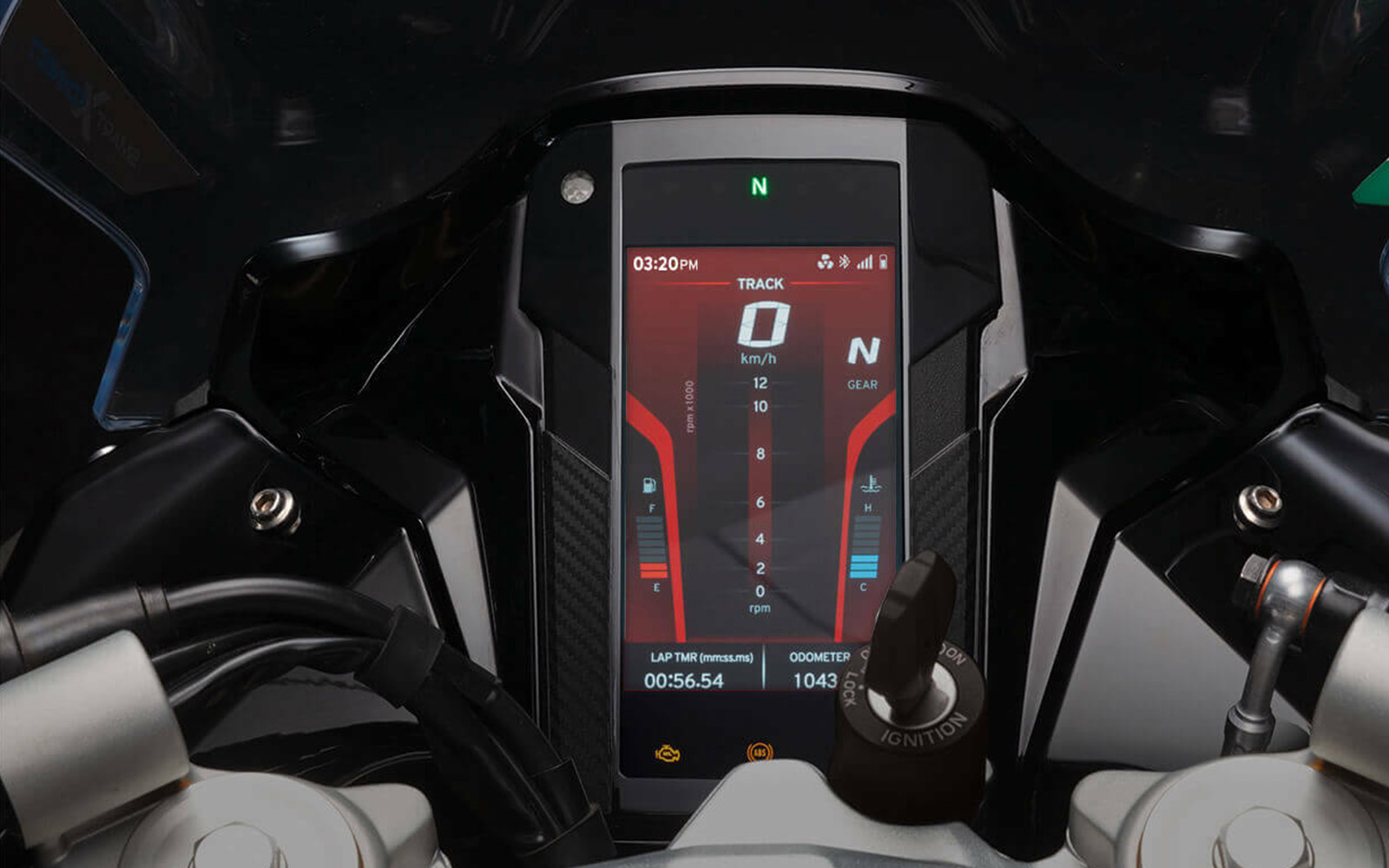 Ahora, con un simple movimiento de muñeca, se obtiene un rendimiento preciso en la pista como nunca antes. La RR310 está equipada con un control electrónico del acelerador de última generación (ETC), que incluye un puño electrónico del acelerador, un cuerpo electrónico del acelerador (ETB) y una unidad de control electrónico.
